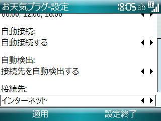 X02HTホーム用お天気プラグの情報源はlivedoorです